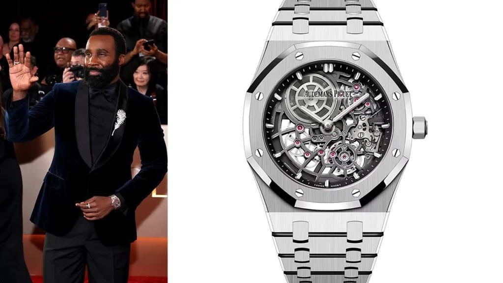 同戴AP的還有Tramell Tillman,他選了皇家橡樹“Jumbo”超薄鏤空腕錶,18K白金加上鏤空錶盤,機械美感優雅又硬核。