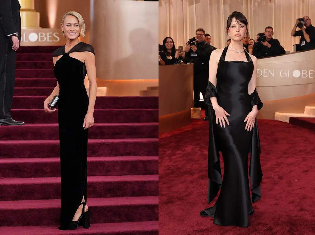 除此之外,今年黑色系可謂大行其道,《紙牌屋》女主Robin Wright,英國演員Mia Goth都穿了綁帶式的黑色禮服。