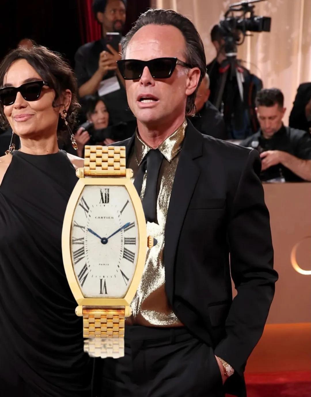 老戲骨Walton Goggins則展示了極高的老派審美,選了一枚古董卡地亞Tonneau酒桶形腕錶,優雅永不過時。