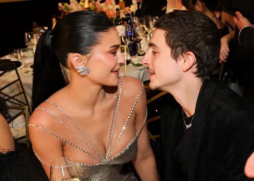 女友凱莉·詹娜如影隨形。甜茶獲獎時倆人緊緊擁吻,大肆撒糖。感覺《與卡戴珊一家同行》又有新素材了~