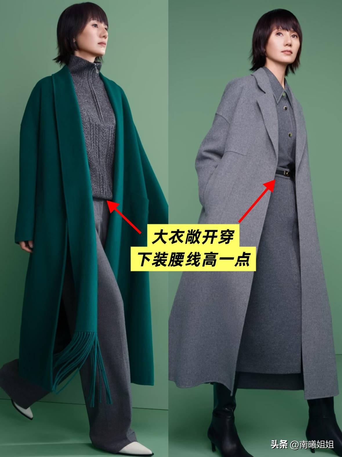 好身材都是穿出來的,冬天穿長款大衣的時候,建議可以敞開穿,尤其是對於小個子和五五分身材的女性來說,無論是繫帶款、紐扣款的大衣,統統都要敞開穿。