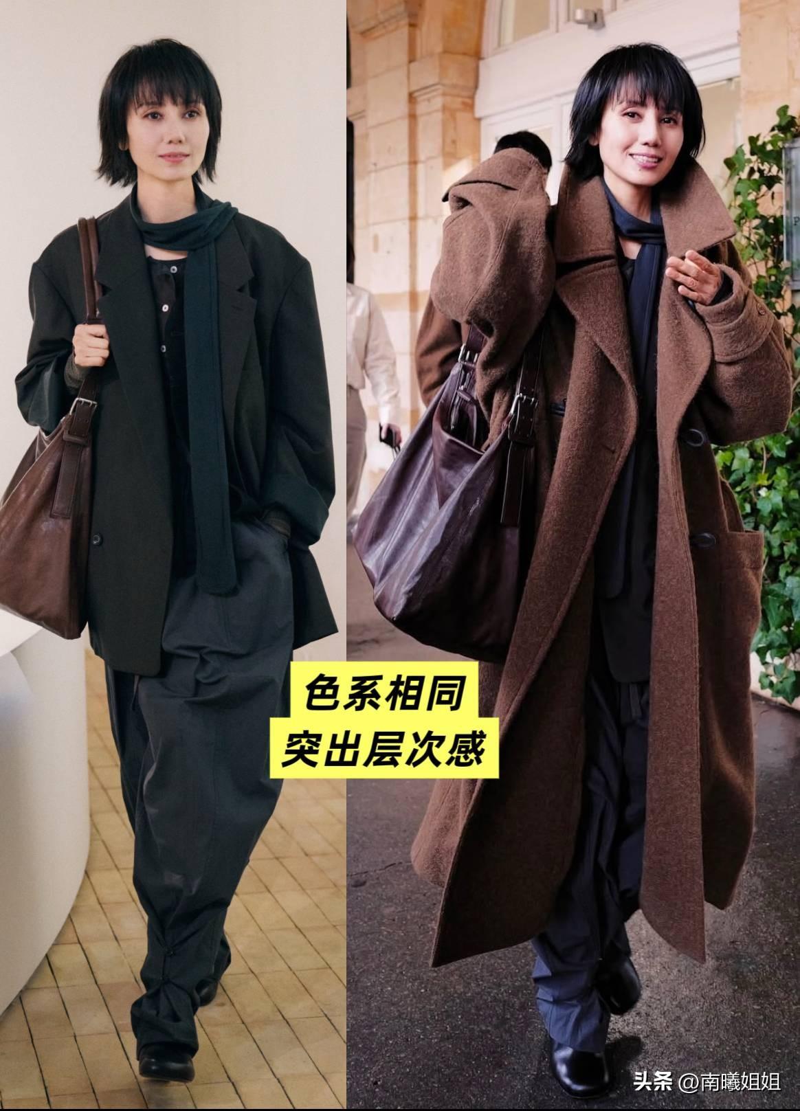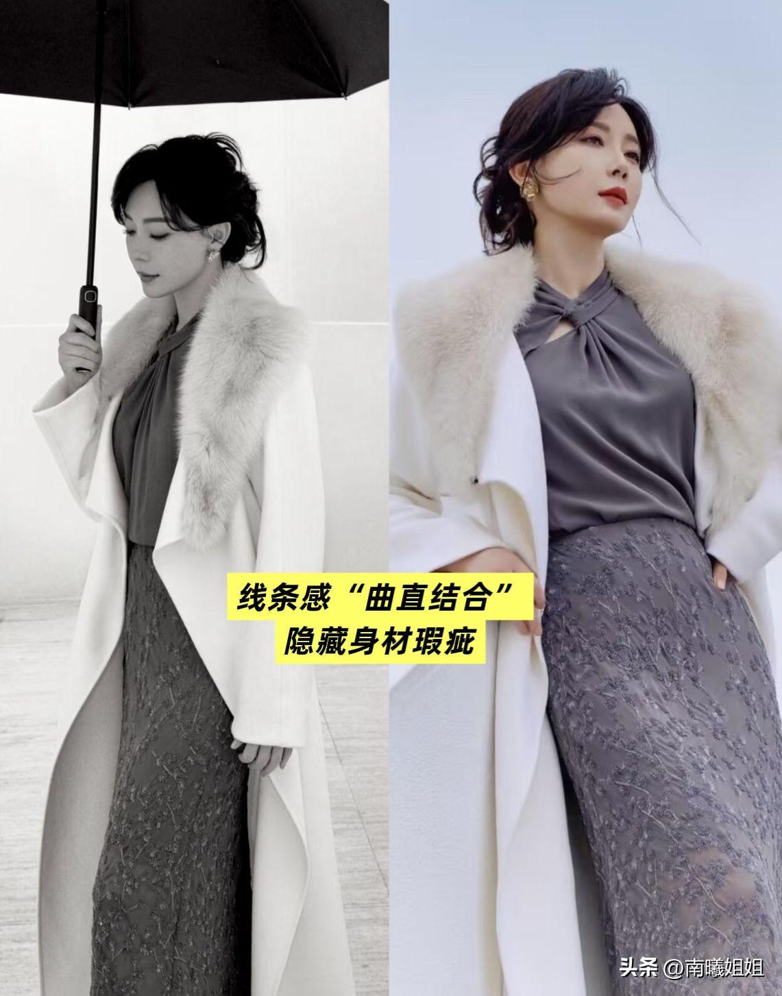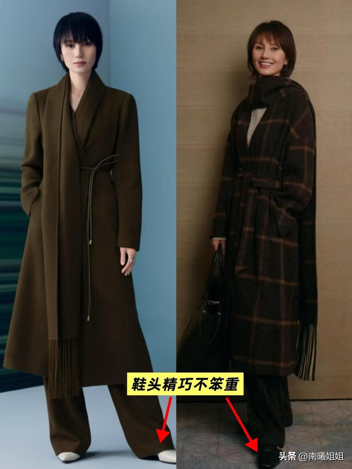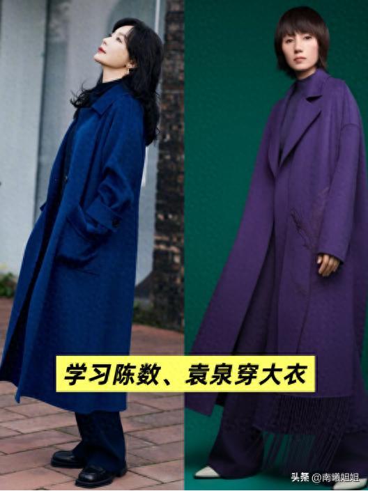 仔細觀察陳數、袁泉的穿搭,你會發現她們在挑選大衣的時候,就很有眼光,從來不會選oversize版型的大衣,而是會通過H型修飾身形線條,既不會顯得邋遢,又能穿出好身材。