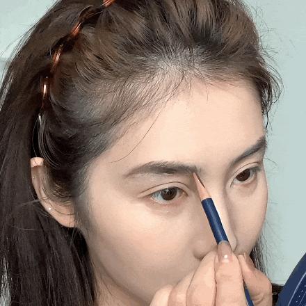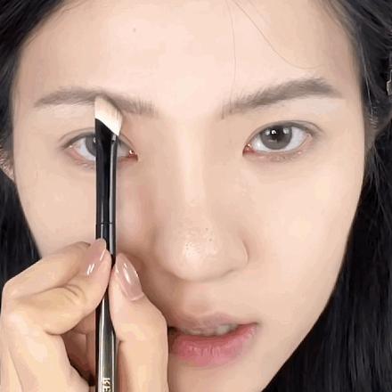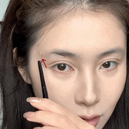 先給眉毛定3個關鍵點位:最低點落在眉毛中線處,眉尾點對齊眼線延伸線,再找準自身眉峯最高點,三點連線框出意式挑眉的基礎輪廓,隨後用眉刷蘸取眉粉順勢連接,確保線條流暢不生硬,凸顯意式美人的幹練氣場。