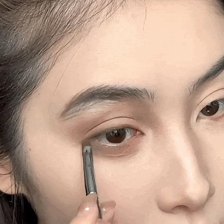 眼窩打底營造深邃感,選低飽和啞光色(如淺棕、奶茶色),掃過眼眶外圍,範圍比日常妝稍大。重點將眼尾向外自然拉展,爲後續眼妝鋪墊出通透的深邃基底,避免色彩堆砌。