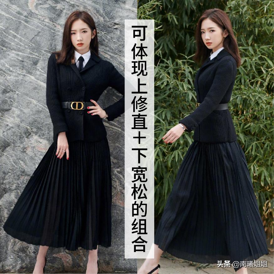 但如果你下半身身材狀態會有一些不足,又或者是梨形的身材,我們就可以運用上修身下寬鬆的這樣的搭配組合,所選擇的單品最好是屬於上下系列分開的類型,能夠很好的優化身形走向,也顯得比較的穩定大氣。