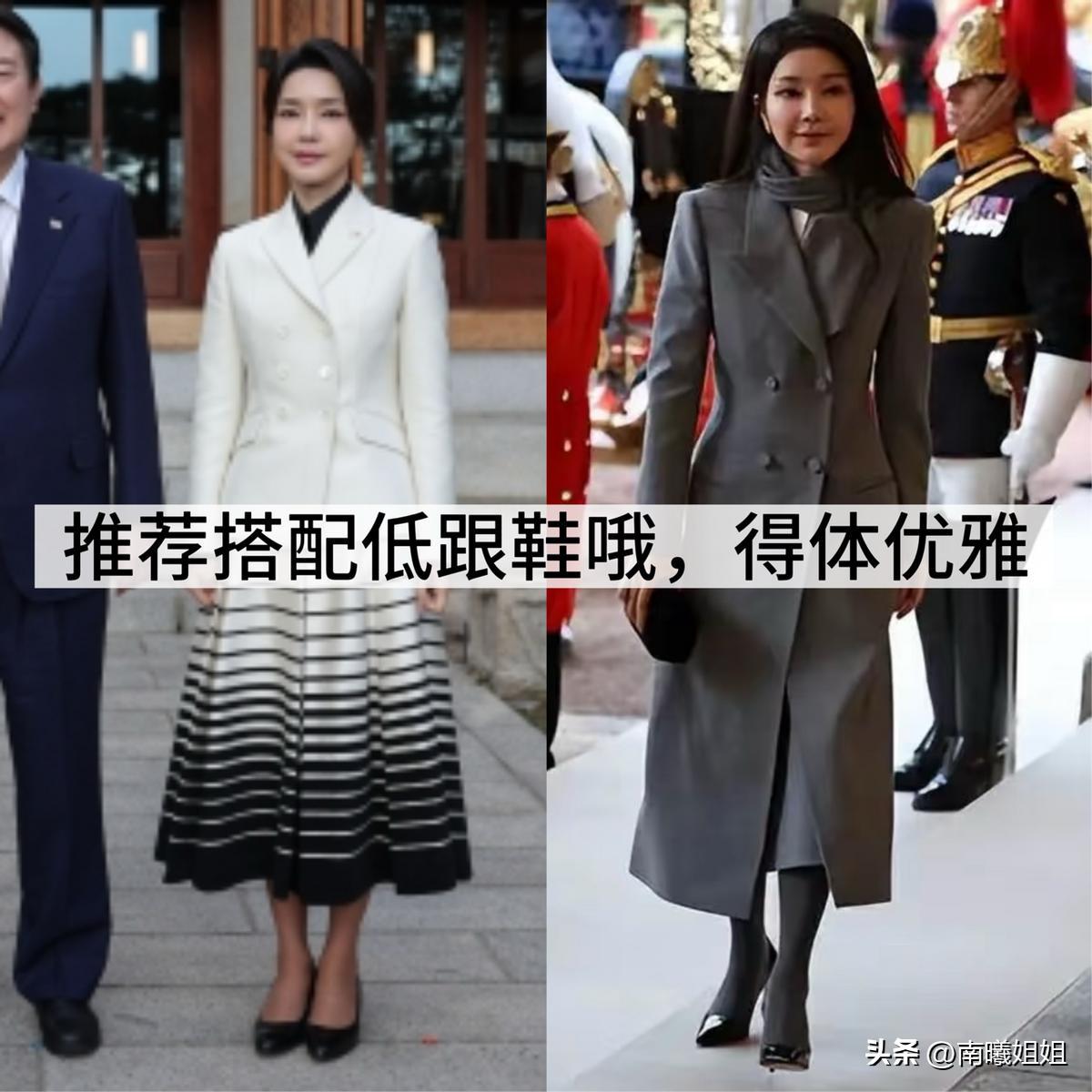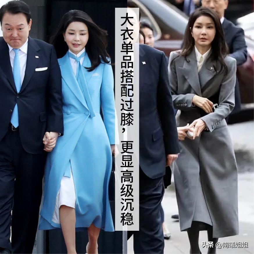 這位夫人在很多公開的場合當中所選擇的單品幾乎都是大衣,也比較的符合當下這個季節呢,所以也建議屏幕前的各位女性可以跟着金建希,優先於選擇經典款式的走向設計,而且比較的簡約,最主要的是其長度不過膝,在膝蓋以下的版型狀態更加的優雅和具有沉穩感,而且對於我們的身形走向也修飾的很好看。