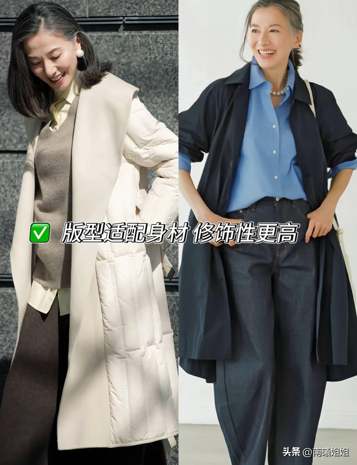 版型決定身材,上了年紀的女人想要穿出好身材,首先要避開太過緊繃、鬆垮的衣服,掌握好“揚長避短、突出氣質”的原則,藉助合身的衣服修飾身形,提升利落感。