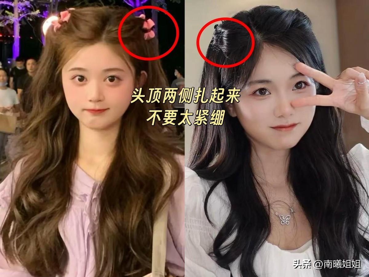 想要通過髮型“換張臉”,就不要輕易嘗試高難度的款式,像這種減齡公主頭,以半扎發作爲基礎,頭頂兩側紮起來之後,向後固定,超有軟妹氛圍。
