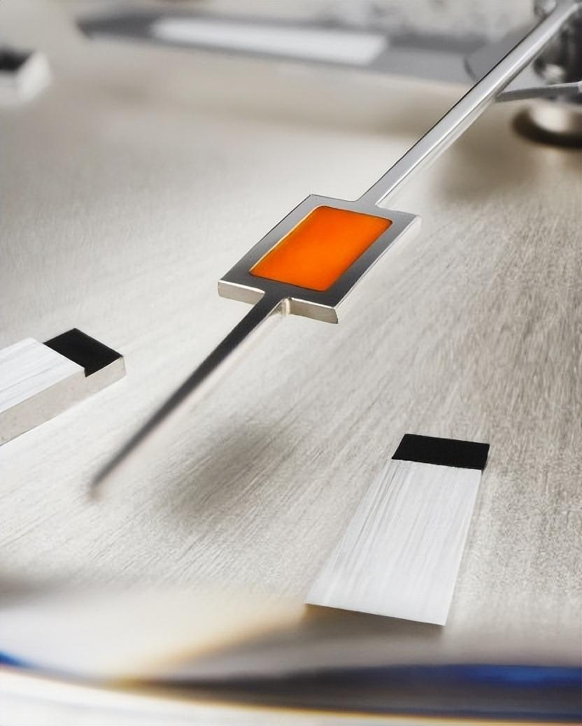 ZENITH真力時DEFY巔峯系列A3643復刻版腕錶秒針以亮橙色矩形刻度點綴,極具視覺動感