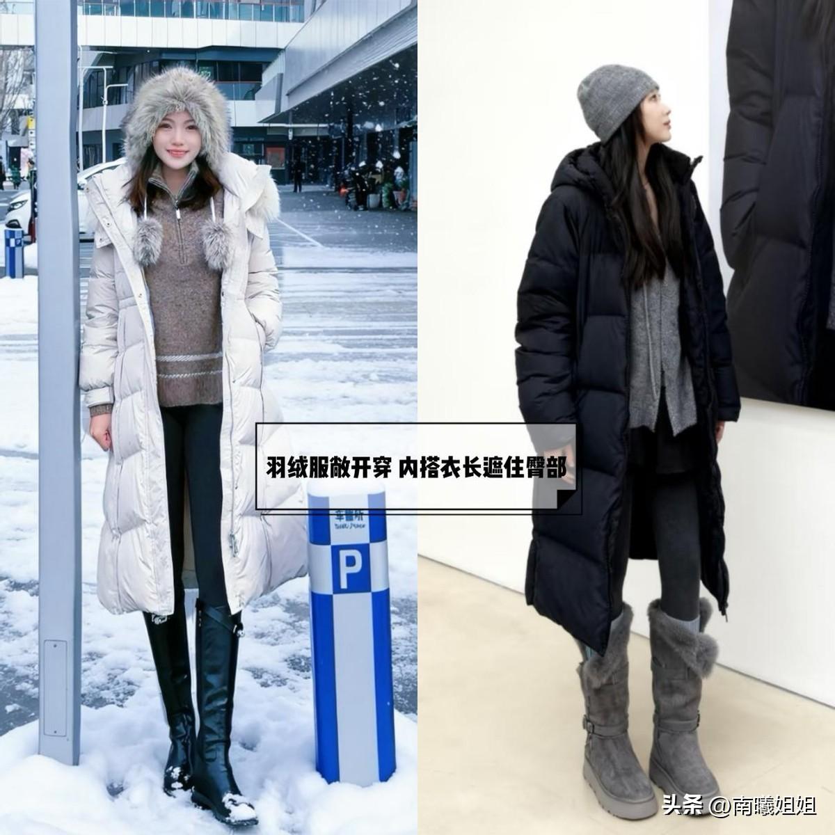 方案2.穿羽絨服+無痕褲+長靴