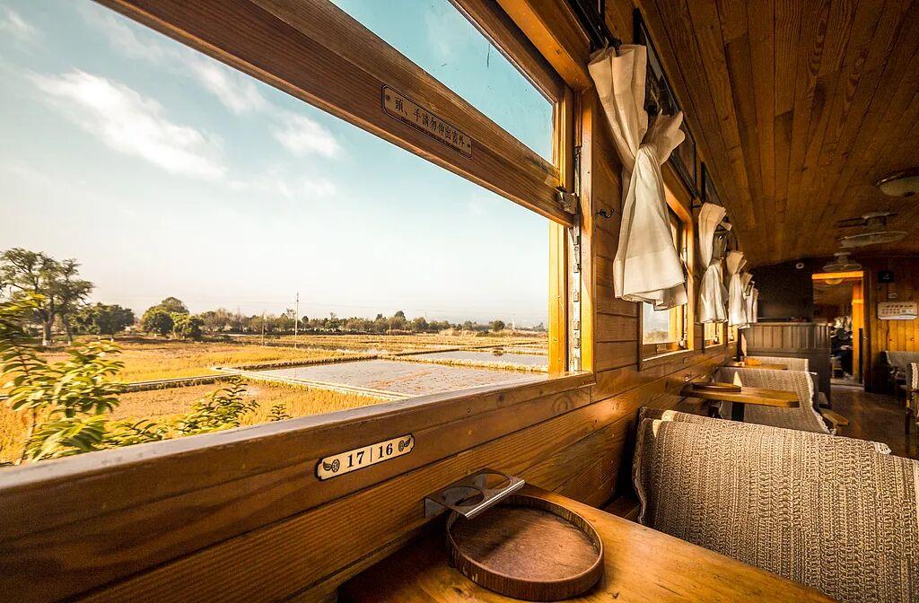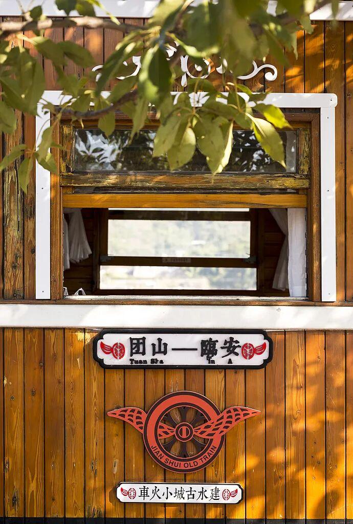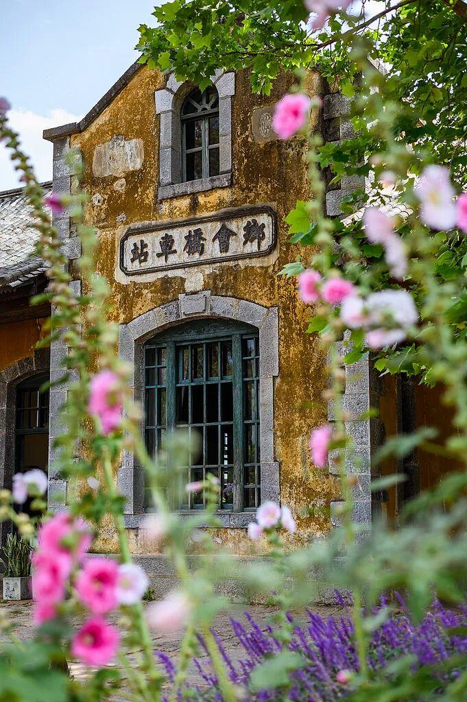 乘着黃皮法式小火車從臨安站駛向城外,一路上都能看到村莊、田野和古橋,途經的每個站點都是法式與中式風格結合的建築。