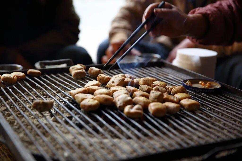 這樣的燒烤桌遍佈建水古城的犄角旮旯,他們特別服務於一種食物——豆腐。