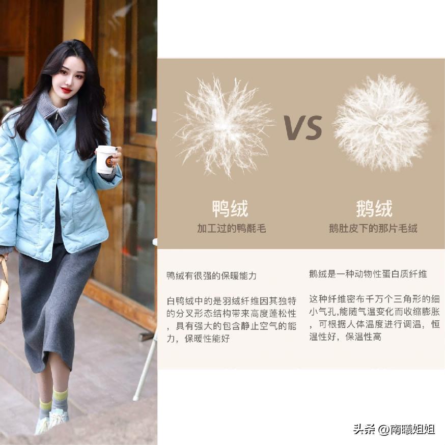 所以其實在今天的分享當中要告訴各位的是,我們要入手羽絨服,尤其是比較高價位的,一定要認準鴨絨鵝絨這兩類填充物纔是最佳的。尤其是白鴨絨和白鵝絨屬於規格比較高的,運用起來的時候保暖效果也會比較好,很多有良心的知名品牌,幾乎都是屬於這兩類填充物,又保暖又不會有任何的異味感。
