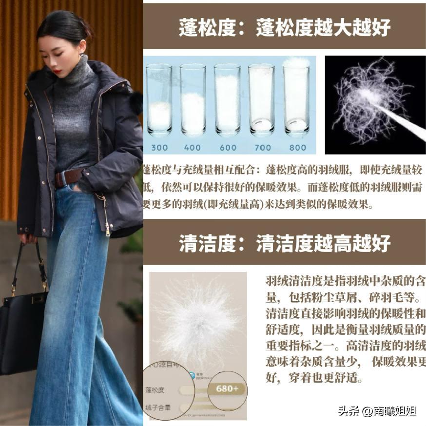 第三個點的話其實羽絨服當中它的蓬鬆度以及清潔度也是入選挑選的關鍵點。建議大家不管是什麼樣款式的羽絨服,其蓬鬆度還是要達到600以上,好的話也能夠達到800~900如果是平價羽絨服,那麼前者就夠了,但如果是像波司登,又或者是更貴价的羽絨服還一定要以高標準來要求他。