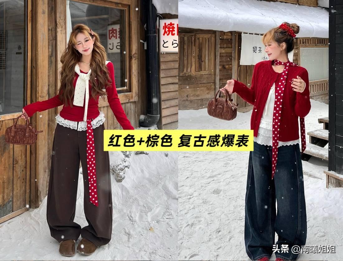 ✓進階氛圍感穿搭→紅色+棕色,復古有層次