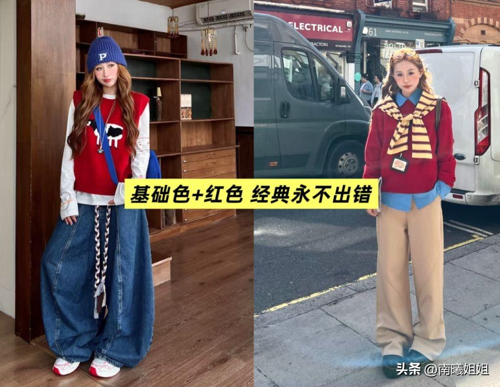 紅色毛衣想要穿的好看,找準配色核心是關鍵!“紅色+中性色”的組合,就是基礎的萬能配色公式,經典永不過時,新手小白也可以輕鬆上手。