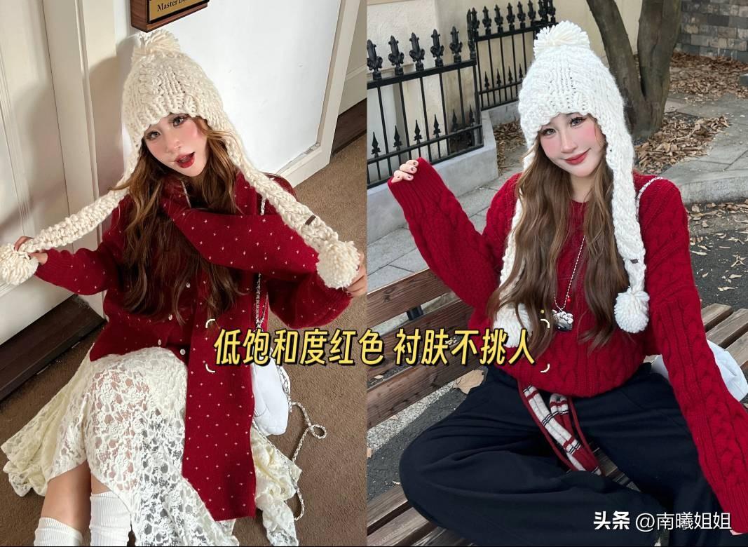挑選紅色毛衣也是一門學問,首先要按照膚色選擇紅色調,冷白皮推薦高飽和度的正紅色、亮紅色,可以突出膚色乾淨透亮的狀態,顯得氣質更紅潤。