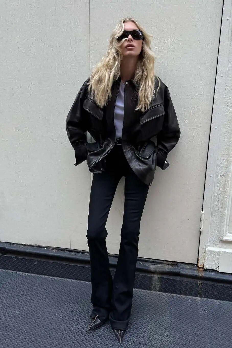 今年流行的Vintage感皮夾克Elsa Hosk和Bella Hadid都反覆上身,而且找到了復古又符合當下時髦的打開方式。皮夾克搭配低腰微喇褲,最重要的是一定要再踩一雙尖頭鞋,整個人都Sharp了起來。