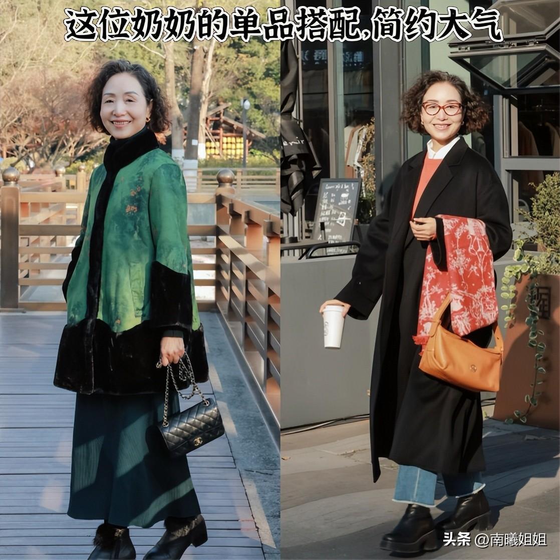 大家可以看一下這位上海奶奶,一眼看起來整體的氣質是偏向於高級又簡約,又具有時髦感的,但是所擁有的單品系列又都是非常經典簡約好穿的類型。所以再到了一定的年齡階段我們所搭配的單品系列不是非要契合於當下所謂的流行,又或者是隻穿老年裝,找到適合自己、最簡約大氣的打扮是最爲好看的。