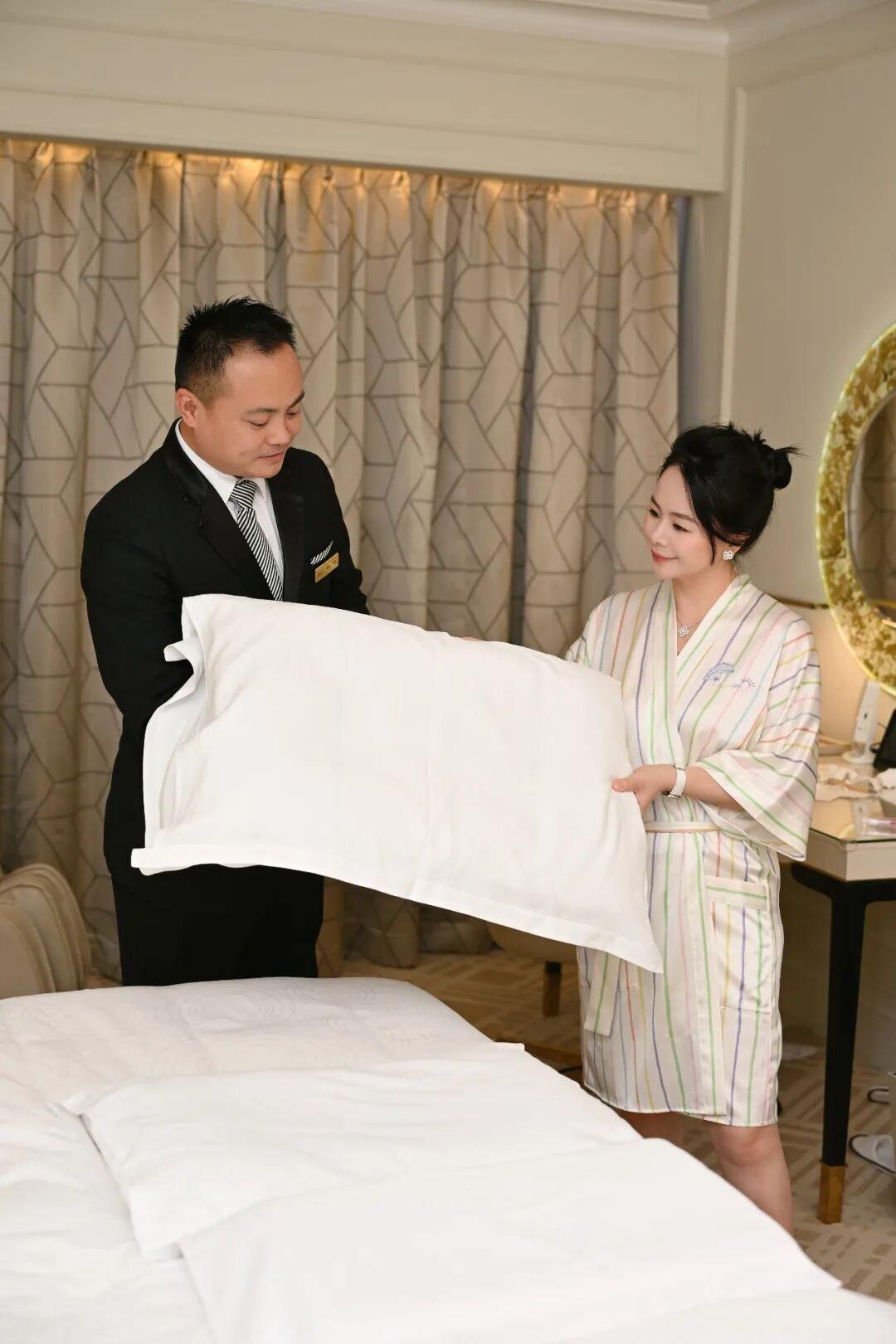 酒店的夜牀服務,還提供定製化的“睡眠菜單”。管家會親自展示枕頭菜單,助眠安神的薰衣草枕、支撐護頸的記憶枕、傳統天然的蕎麥枕,我選了敏感呵護的防過敏枕。