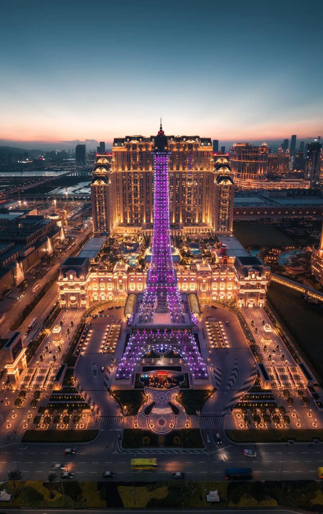 站在鐵塔37層,整個路氹金光大道的璀璨夜景毫無保留地在眼前鋪開。俯瞰腳下,是燈火輝煌、如皇宮般壯麗的巴黎人酒店主體,對面則是流光溢彩的倫敦人。夜風拂面,看着這就如同“流動的盛宴”般的景色,這一刻的儀式感,絕對是這頓大餐最完美的句號。