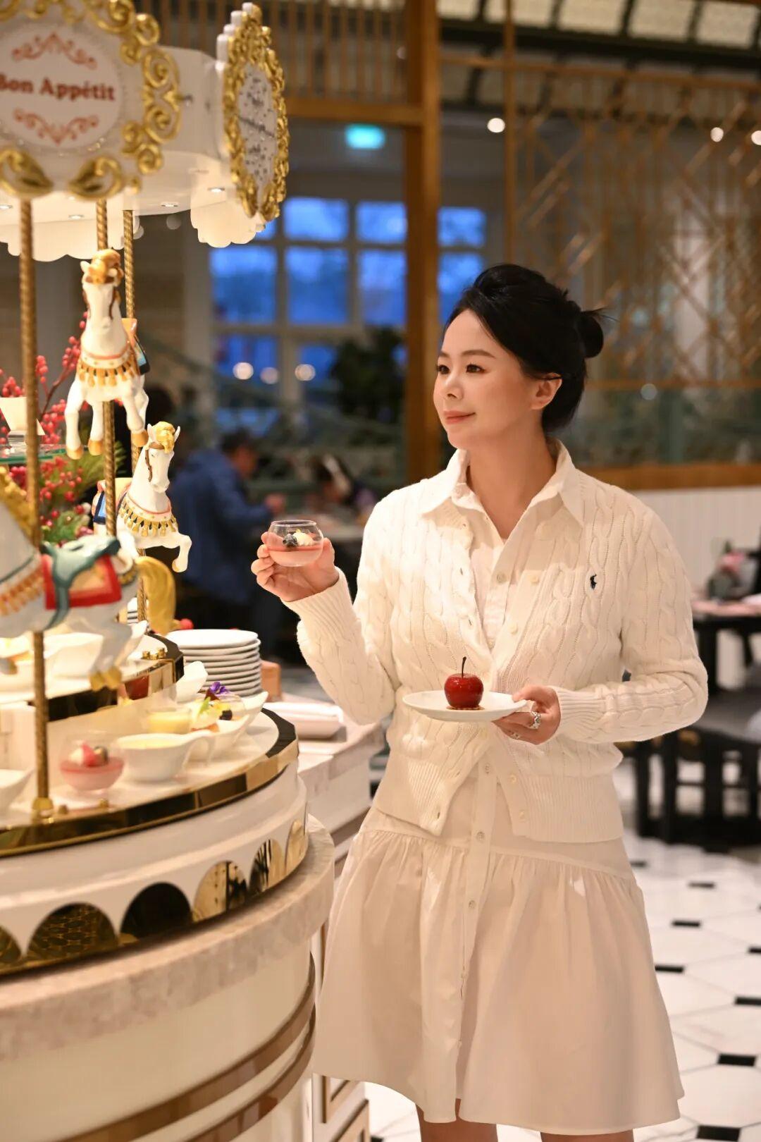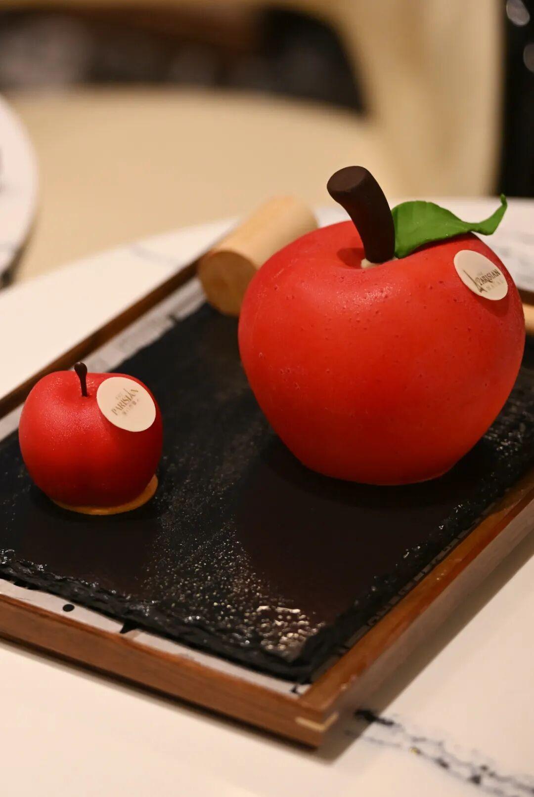 自助餐廳最吸睛的莫過於旋轉甜品臺,層層疊疊擺滿法式甜點,看上去特別誘人。蘋果造型的慕斯甜品是新春祈福的顏值擔當,新年喫一口寓意“蘋蘋安安、平安喜樂”。
