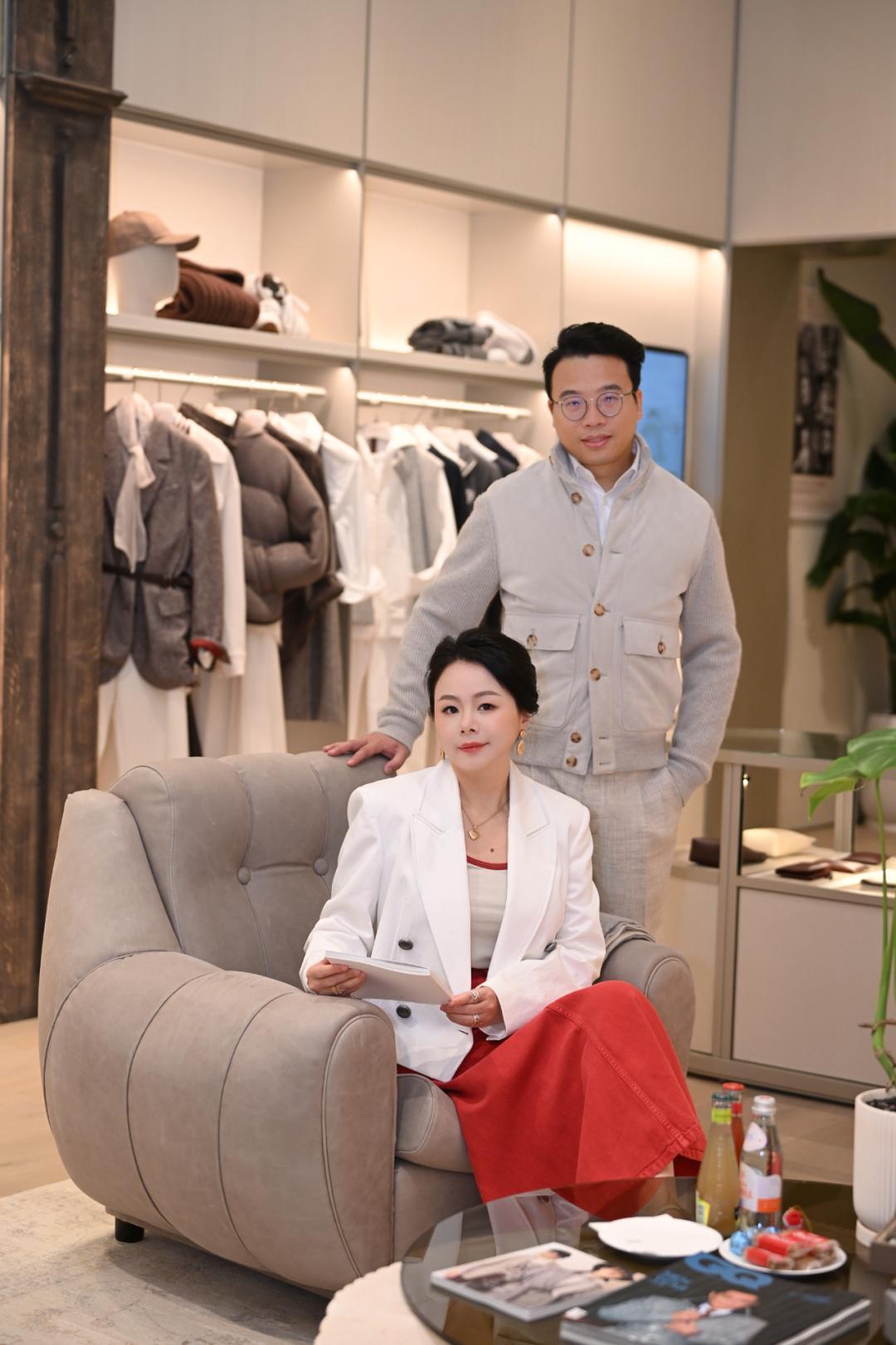 其中倫敦人購物中心的Brunello Cucinelli也是可以閉眼入。範主選擇一套宴席戰袍——短款挺闊西裝搭配拼色螺紋背心,利落剪裁自帶英氣,下裝搭配五袋喇叭式半裙,牛仔材質與濃郁的中國紅結合,既喜慶又不失時髦感。還給老公挑選了一款麂皮與針織拼接夾克,也是BC男裝非常經典的“山羊絨美學”體現。