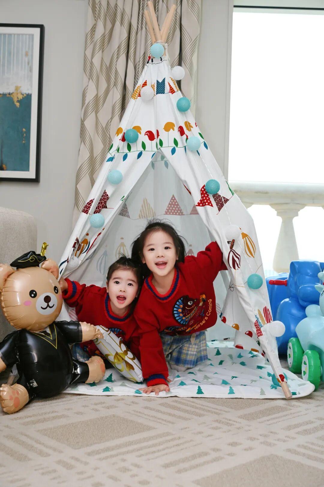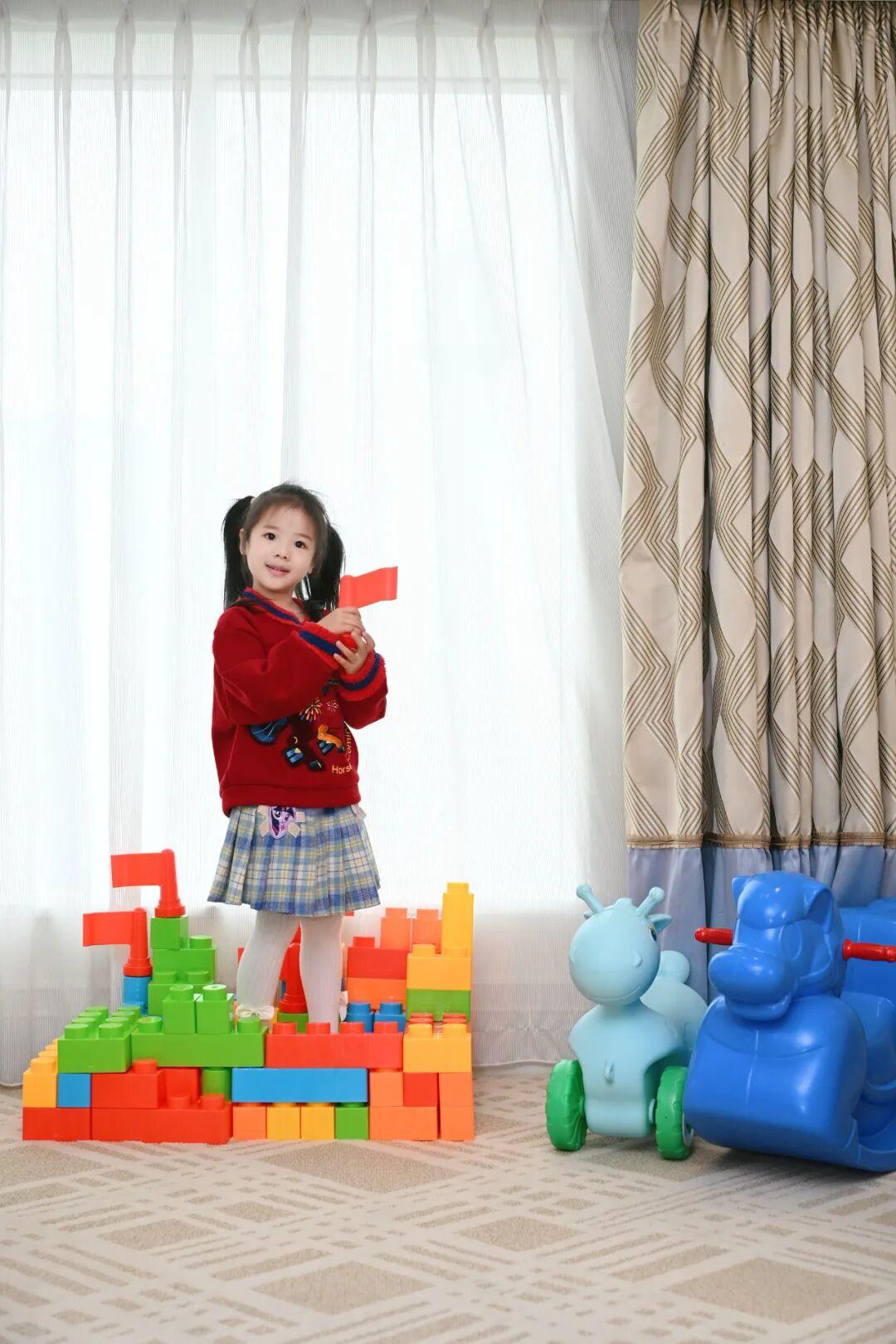 除了味蕾的享受,酒店還貼心地爲她們佈置了小帳篷,姐妹倆最喜歡鑽進裏面給我們surprise。她們在客廳裏一會兒耐心地搭起積木城堡,化身“小公主”;一會又騎上小馬,變成童話裏的騎士。