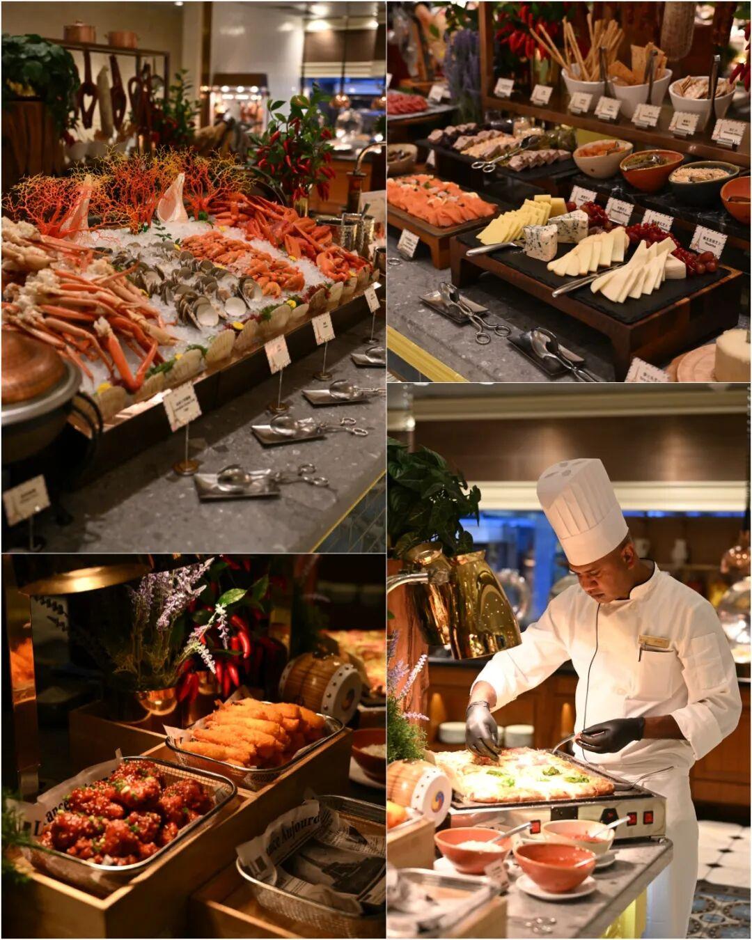 餐廳的菜品跨度非常大,不僅僅是填飽肚子,更能嚐遍全球風味。海鮮冷盤新鮮度爆表,中式熱菜、日式壽司刺身以及印式、泰式、韓式…幾乎全球美食一網打盡。