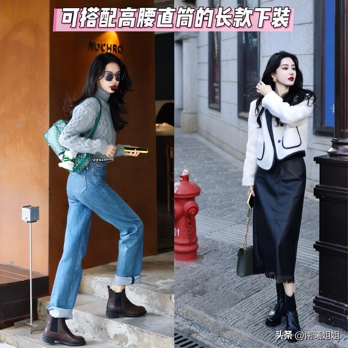 第二款推薦給大家的就是短款的靴子了,而且是設計走向非常簡約大氣。靴筒略微寬鬆一些的切爾西靴,對於絕大多數的女藝人以及時尚博主們而言,在日常出行的時候,會非常喜歡這樣的短靴來進行運用,也建議大家可以首選基礎的色系搭配或者是拼色的設計,展現出來的百搭感和視覺優勢更強烈呢。