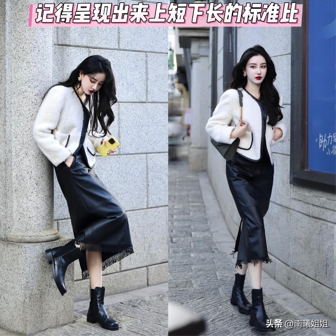 像這樣的長筒靴搭配設計長度的話也是有着一定的標準的,推薦各位女性如果你的個子本身就不高,或者是腿型不長的話那麼一定要避開剛剛卡在膝蓋部位的長度,要麼是選擇膝蓋以上的長款設計,要麼就是中長款的搭配也就是在膝蓋以下,才能夠保證我們整個身形狀態的比例穩定。
