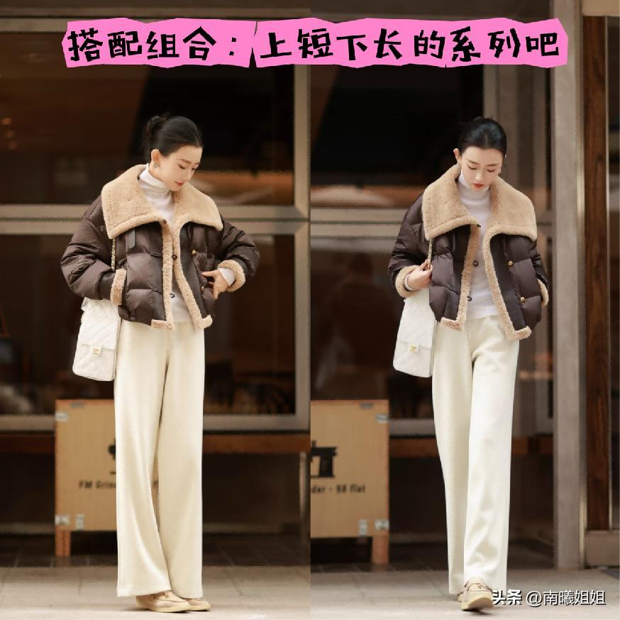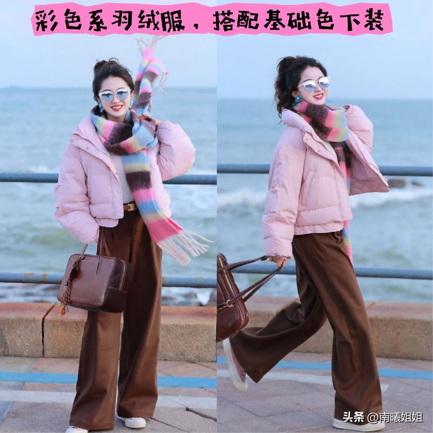 而且以上這樣的穿搭組合當中,我們也可以多多的去運用一些對比的色相,例如短款的羽絨服就可以運用彩色,又或者是淺色系列下半部分的長褲長裙就是暗色調,這樣搭配不僅能夠在視覺上呈現出來很明顯的分割效果,將標準的比例再次進行強調,也能夠呈現的更加具有沉穩性。