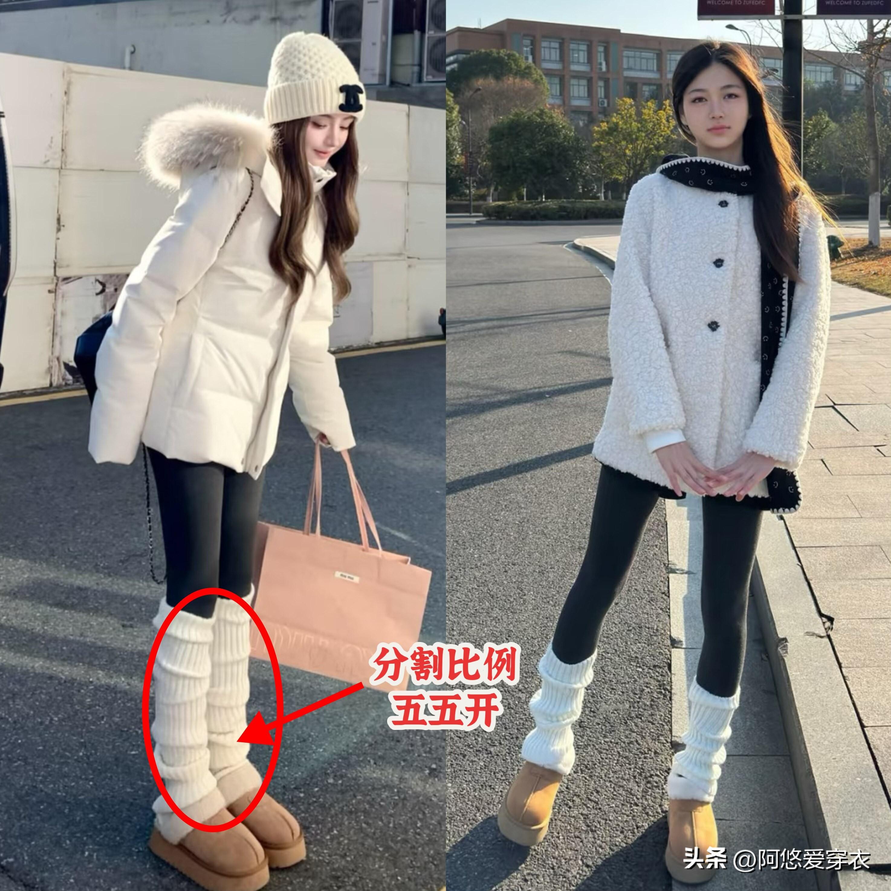 不過,我發現這種搭配屬實是有點爛大街,這些美眉穿上光腿神器、打底褲配雪地靴和堆堆襪,看似精心打扮了,卻有一種很強的堆砌感,關鍵是很挑身材,腿長腿細的姐妹穿纔好看,腿短腿粗的姐妹穿上立馬變成五五開,比例也會變差。