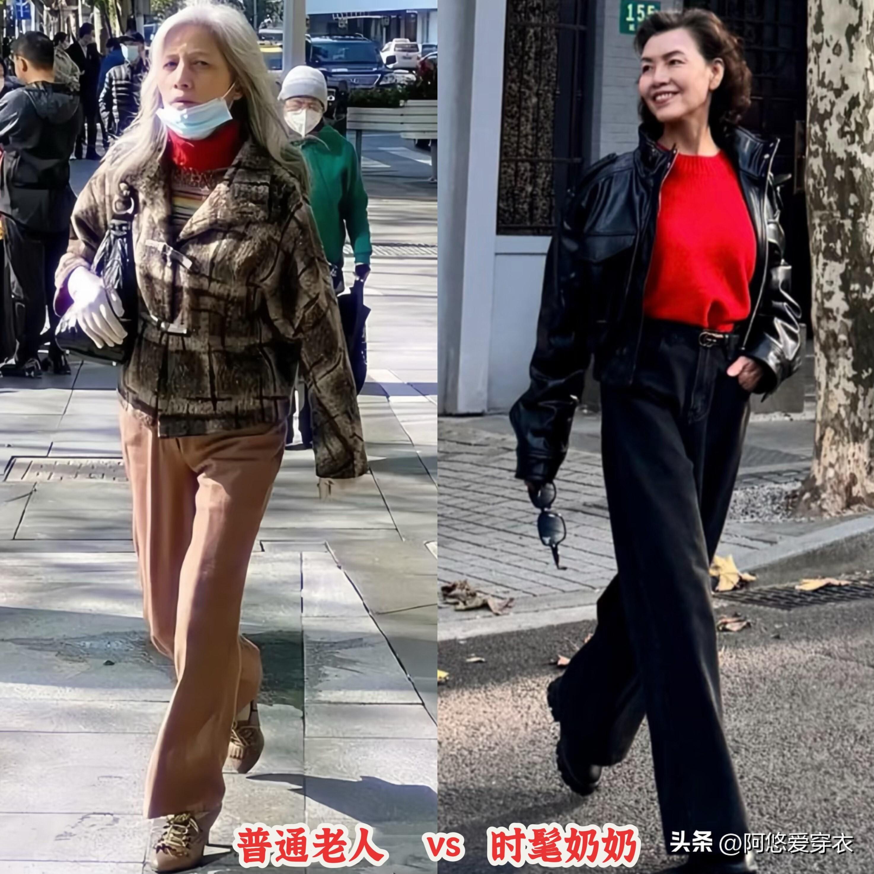 再看會打扮的時髦奶奶,她們穿的衣服風格洋氣,搭配也有章法,哪怕臉上也有了皺紋,但靠穿搭就減齡了10歲,狀態看着特別好。
