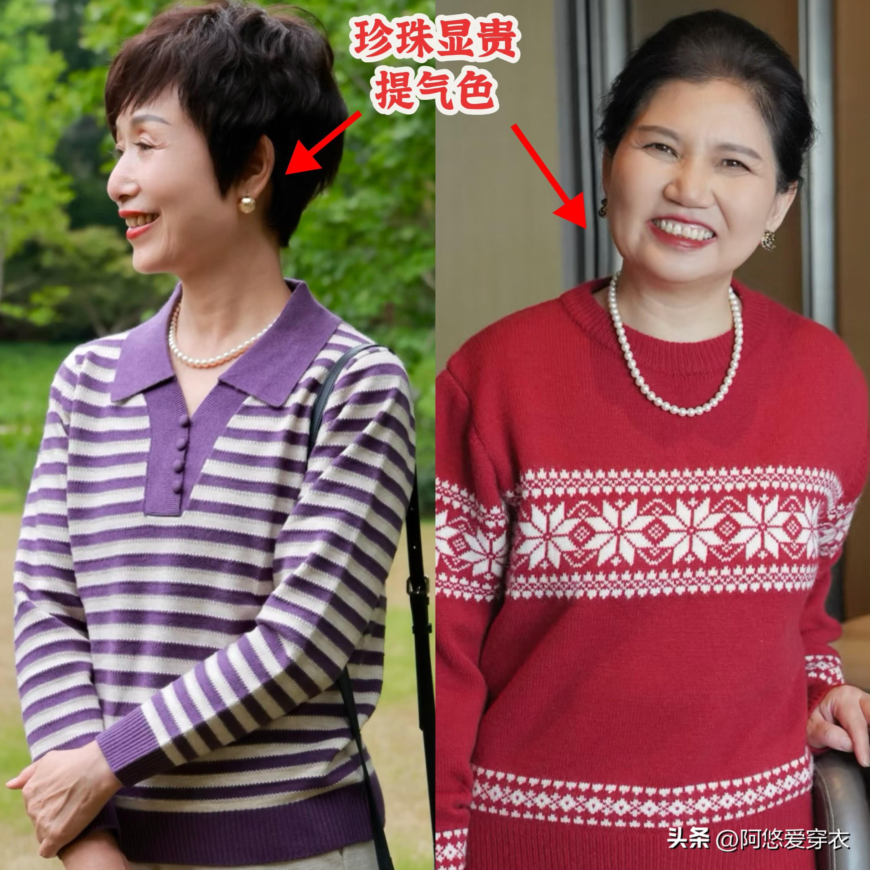 老了戴首飾,核心是 “點綴” 不是 “堆砌”,建議把家裏的多層金項鍊、厚重的金鐲子收一收,換成小巧精緻的單品:比如一對珍珠耳釘、一條細款銀項鍊、一隻簡單的玉鐲,這些配飾光澤柔和,不會搶鏡,還能提升整體穿搭的精緻度。