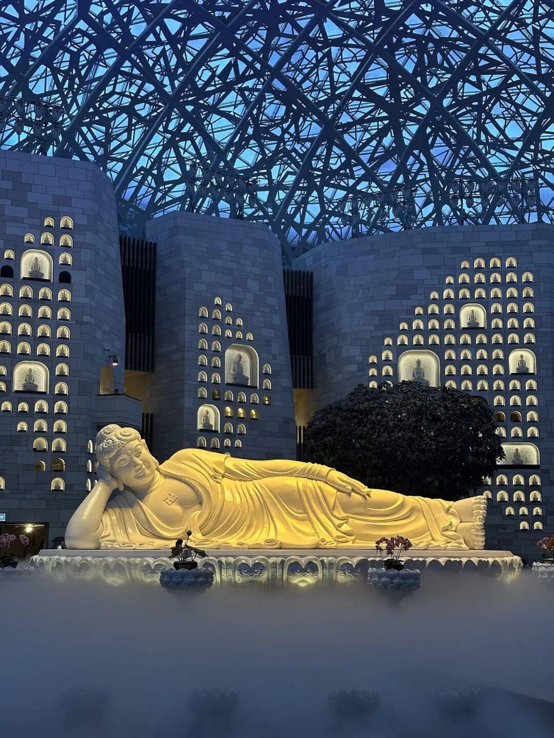 被網友驚歎爲“國內旅行天花板”的南京牛首山文化旅遊區,據說花費近40億元打造出一個頗具視覺震撼感的佛教建築,地上3層+地下6層,遊客穿行其中,會有一種與世隔絕的奇幻感。8小時都逛不完,每一處光影與佛像,都會令人感嘆佛教美術通過視覺力量,那直抵內心的震撼與治癒。此外,牛首山景區還配有休閒度假級別的希爾頓酒店,打造出一種“山上祈福、山下賞景、酒店度假”的全場景心靈體驗。在娛樂過載的時代,人們太缺少一個能人真正靜下來的場域,安頓焦慮與迷茫。而穿梭於衆神衆佛的景色中,心也會不自覺地沉靜下來,找到久違的安定感。