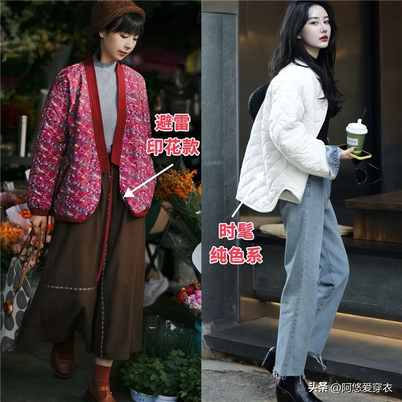很多人都以爲,現在年輕人穿的大棉襖還是以前爺爺奶奶那輩流行的花色款,其實很多人穿大棉襖顯土,就是栽在了花色選錯上,尤其是那些飽和度很高的大紅大綠印花款棉襖,穿在身上特別老氣,花色的膨脹感太強,穿在身上也會讓你看起來虎背熊腰的,普通人真的hold不住。