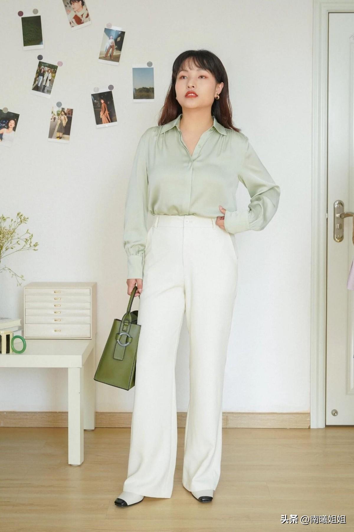 第一種:真絲襯衫+垂感西褲