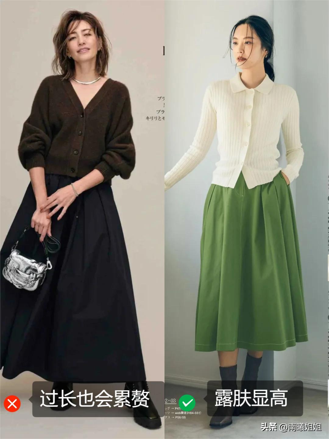 第二種:薄針織開衫+緞面裙子