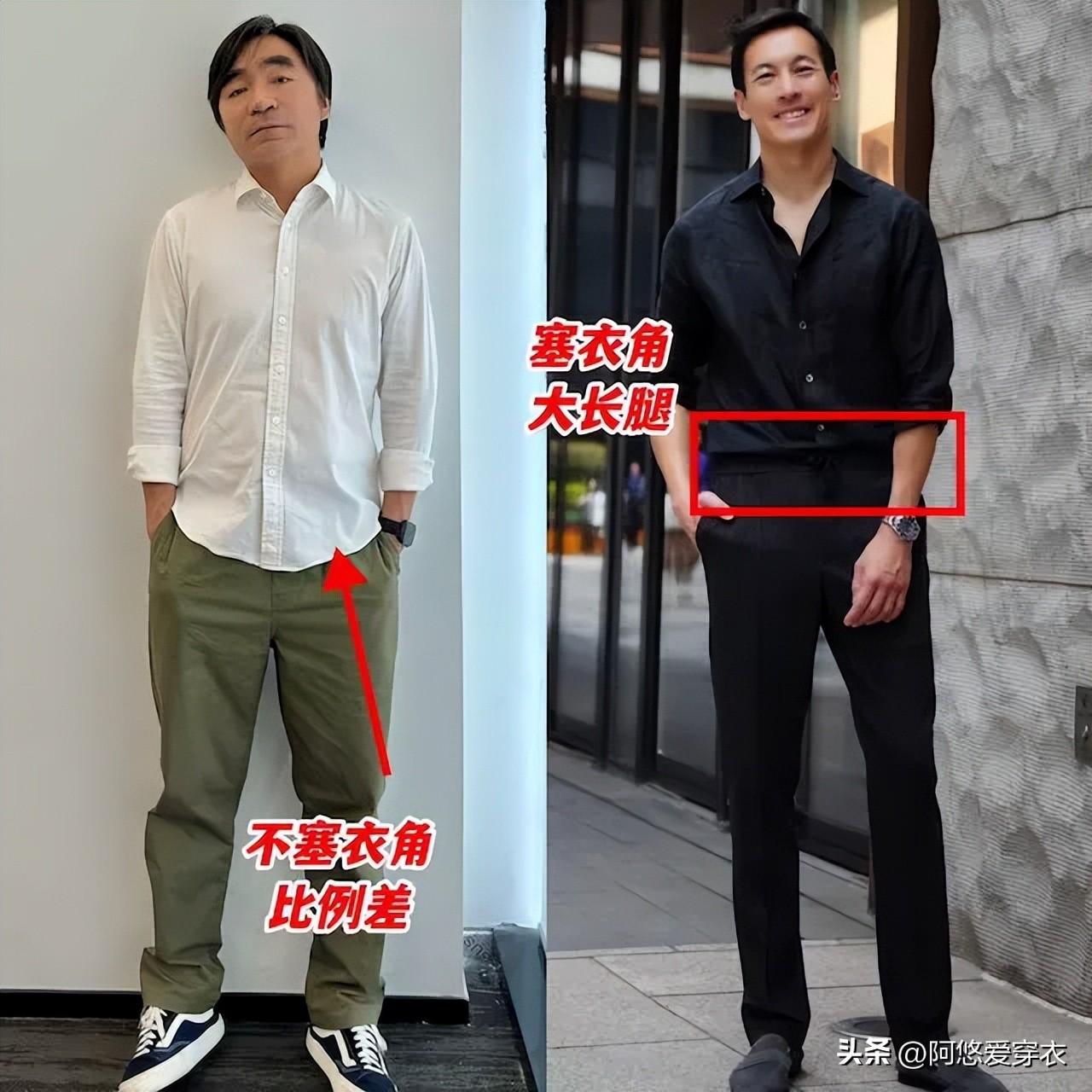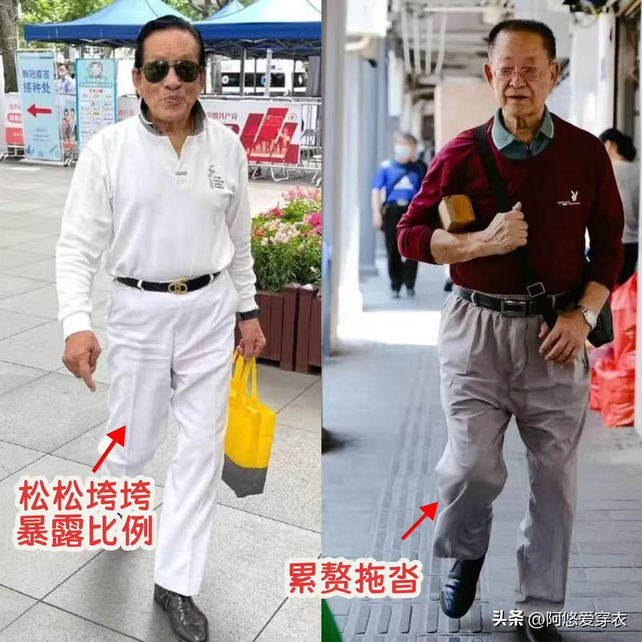 咱們身邊好多大叔穿的褲子都是因爲版型差,瞬間就拉低了自己的氣質,比如這種鬆鬆垮垮的褲腿,穿在身上根本就撐不起來,自以爲可以遮肉顯瘦,卻沒想到更進一步壓縮了身材比例,顯矮還顯胖。