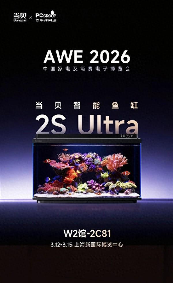 快科技3月9日消息,當貝在智能水族領域再推新品,全新當貝智能魚缸2S Ultra正式官宣,將於3月12日亮相上海新國際博覽中心AWE2026展會。