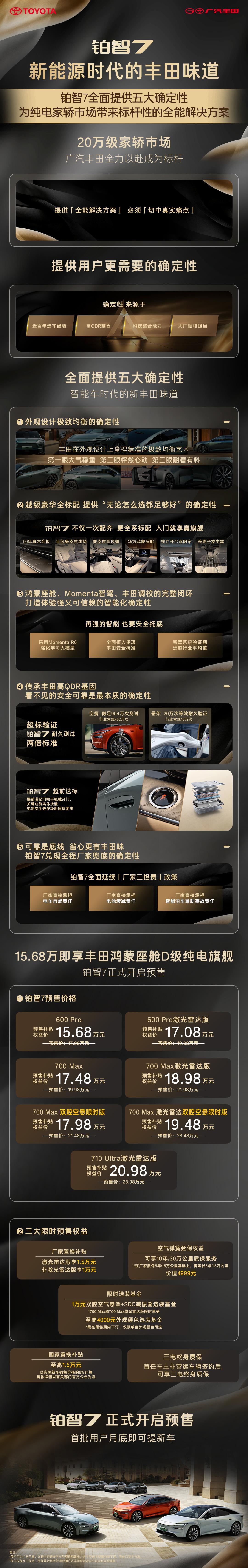 傳統大廠的效率令人矚目,新車備貨充足,首批用戶月底即可提新車。針對電池顧慮,官方硬核承諾三電終身質保及涵蓋自燃、泊車事故全額買單的“三擔責”條款。衆多科技達人看了實車之後一致反饋鉑智7預售價超值。憑藉強大的供應鏈體系與多年的耐用口碑,合資品牌今年必然有望能在純電市場佔領一席位。#豐田鉑智7實車全面到店##豐田鉑智7預售權益價15.68萬起#