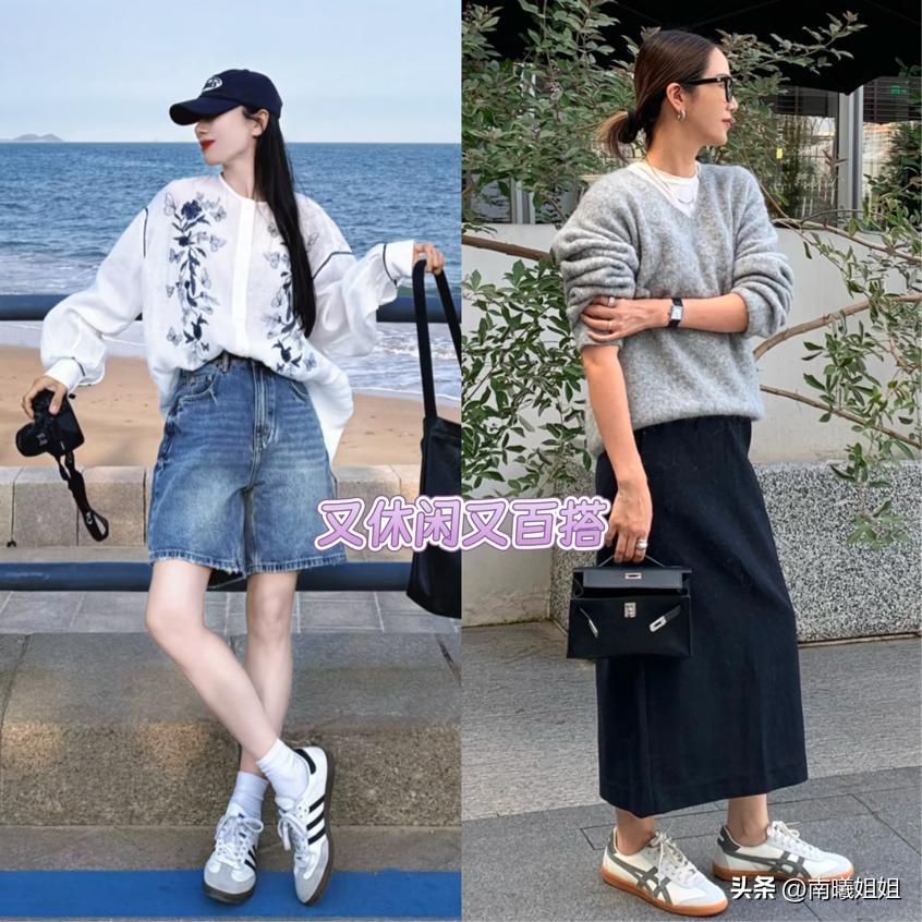 德訓鞋打破了傳統運動鞋的穿搭侷限,憑藉復古簡約的特質,成爲開春的“百搭王者”。它摒棄了運動鞋厚重的中底與誇張的logo,採用薄底、低幫的設計,線條利落乾淨,休閒卻不邋遢,減齡又不幼稚。從搭配通用性來看,德訓鞋完美兼顧了休閒與精緻,搭配牛仔褲、工裝褲時,青春活力,滿滿的少年感,輕鬆減齡5歲;搭配百褶裙、牛仔裙時,清新文藝,甜酷平衡,少女感十足。而且德訓鞋的配色多爲白、灰、藏藍等基礎色,不挑衣服不挑膚色,是開春利用率最高的鞋款之一。