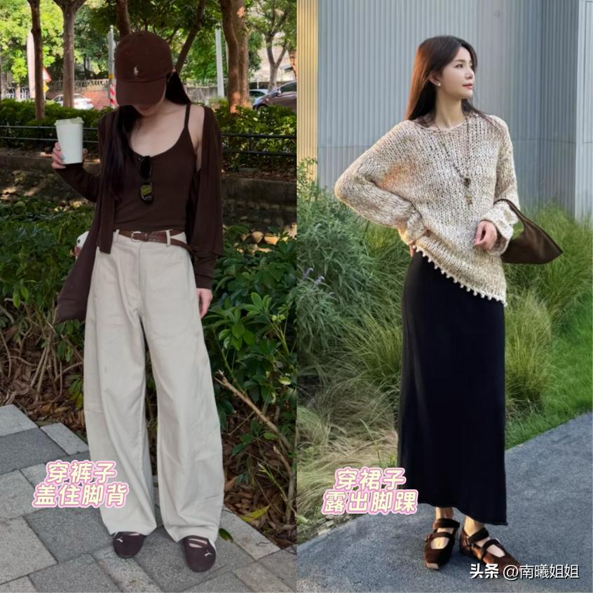 無論搭裙子還是褲子,比例優化都是顯高顯瘦的關鍵,搭配這三雙鞋時,抓住“露腳踝”和“拉高腰線”兩個技巧,就能輕鬆穿出三七分黃金比例。露腳踝是最基礎也最有效的技巧,穿中長裙時,刻意露出纖細的腳踝,能在視覺上拉長腿部線條,讓下半身顯得更修長,芭蕾舞鞋、德訓鞋、樂福鞋的低幫設計,完美適配這一技巧,輕盈又顯高。拉高腰線則能優化上下身比例,搭配高腰裙、高腰褲時,將上衣衣角塞進腰頭,或搭配一條細腰帶,明確腰線位置,讓腿部線條從腰線開始延伸,即便穿平底的芭蕾舞鞋、德訓鞋,也能穿出大長腿既視感,小個子也能輕鬆駕馭。