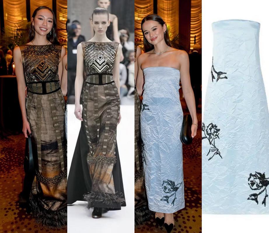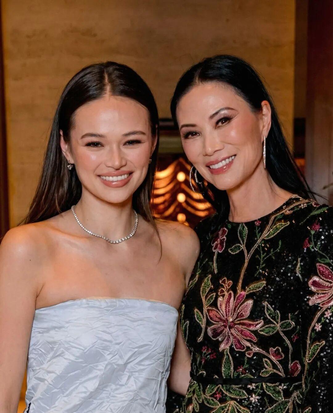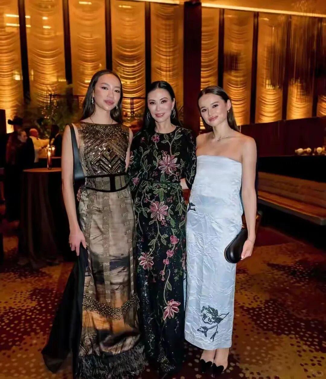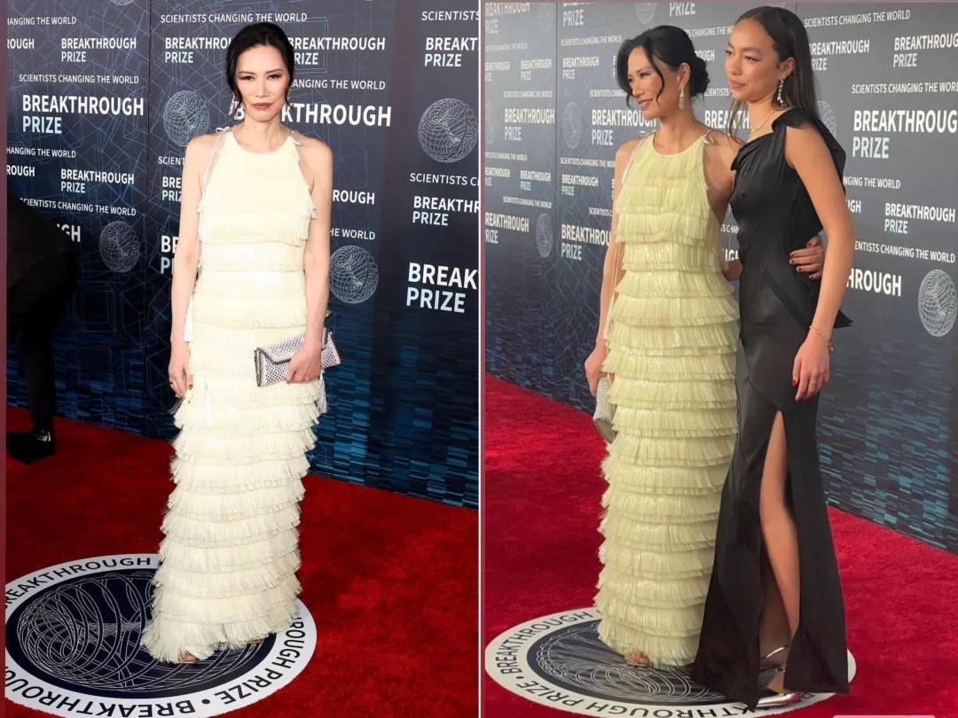 Chloe之前也跟着鄧文迪亮相科學突破獎紅毯。身穿緞面小黑裙,鄧文迪則身穿鵝黃色GUOPEI高定流蘇裙。