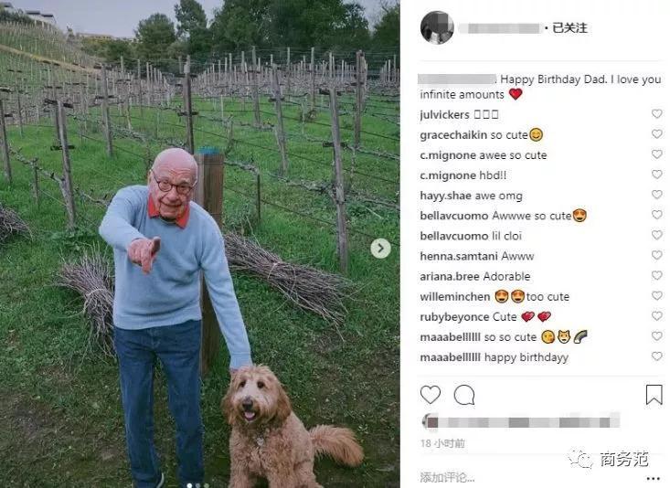 每年默多克過生日,姐妹倆都會定點發祝福。比如會配上一張默多克的照片,以及"爸爸生日快樂,愛你無限量”的配文,情緒價值拉滿。