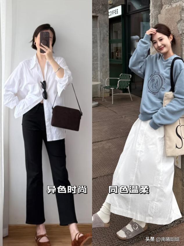 穿搭的高級感藏在色彩細節裏,平底鞋的顏色可與上衣、包包、腰帶、絲巾等配飾呼應,比如棕色樂福鞋配棕色包包,白色德訓鞋配白色上衣,同色系呼應讓整體造型更協調,簡約又顯貴。