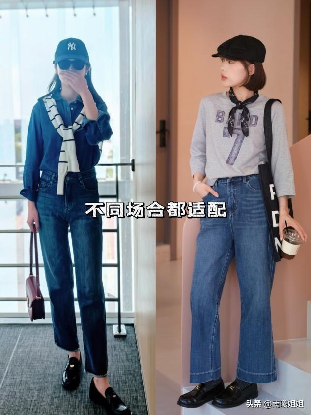 搭褲子就選德訓鞋+直筒牛仔褲 ,上衣配簡約T恤、針織衫或短款外套,復古休閒又藏肉,日常逛街、遛彎、通勤都合適,褲腳微卷露出腳踝,更顯腿長。