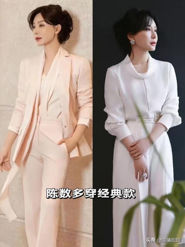 在色彩選擇上,陳數有着自己獨特的哲學。她很少選擇過於鮮豔、刺眼的顏色,而是更傾向於低調、沉穩的色調,如經典的黑色、白色、米色、駝色等。與基礎款的服裝一一組合,中年女人就無需擔心自己穿搭廉價顯老氣了。