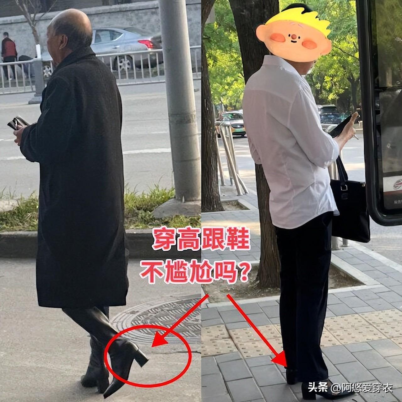而且大叔們穿高跟鞋會產生風格錯位,本想着靠高跟鞋增高,結果卻顯得不倫不類的,男人味都消失了,全身都透着一股 “油膩感”。